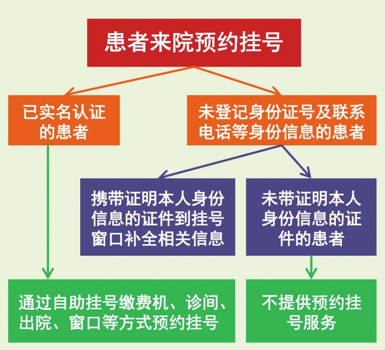 医院相关条件具备后,撤销“身份信息核查处”,门诊实名制工作由人工挂号窗口工作人员负责。