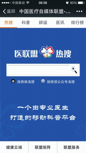 内容权威严谨——平台信息均出自专业医生及医疗机构,对于虚假或不完整信息,联盟专家组将在平台及时澄清。