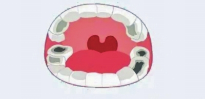 龋齿和齿龈炎常见,牙齿呈粉末状或小块破碎掉落,唇和口角干燥皲裂,有口臭。约半数病人反复发生腮腺肿大,颔下腺亦可肿大。