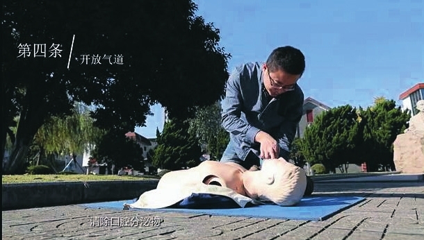 有明确呼吸道分泌物,应当清理呼吸道、口鼻部,取下活动义齿。
