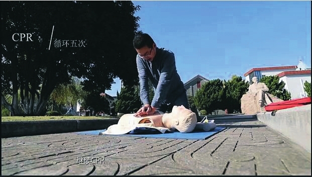 按压频率:100~120次/min;按压30次后执行“A” 。