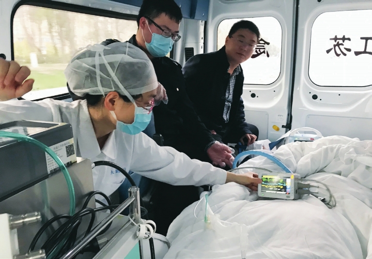 3月17日傍晚,一辆警车前方开道,引导一辆120救护车呼啸进入南通大学附属医院。车上转运的是一位重症肺炎、严重呼吸衰竭的患者,此时患者正在接受ECMO治疗(俗称人工肺),通大附院重症医学科ECMO治疗小组全程随车保驾护航。