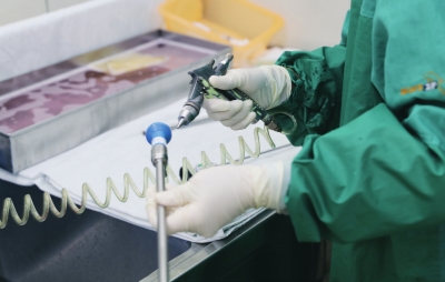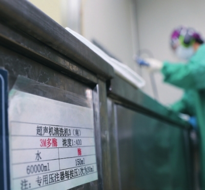 在这里,小到一把镊子,大到一套腔镜器械,从污到洁必须经历十几道工序的磨砺才获得了重新上岗的资格。一套腔镜器械在江国芳的手中需要经过拆卸、预洗、浸泡、超声、刷洗、漂洗、终末漂洗、润滑、干燥等步骤,方可进入下一个环节。