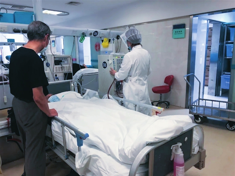 血液净化中心的病人家属徐老,今年83岁了,陪同老伴儿来做透析已经有八年了,从未间断过。他们家住唐闸,来回路途需要近两个小时。徐老说:“尽管我们两人腿脚不方便,途中需要的的时间长,但是我们还是选择通大附院。我老伴是血液净化中心年纪最大的病人,但是在科室医护人员们的精心呵护下,目前总体状况良好。”