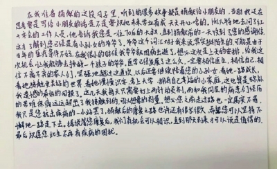 王先生知道后,给志愿者手写了一封感谢信。让王先生没有想到的是,志愿者回复的鼓励信和造血干细胞一起飞越1100公里,抵达