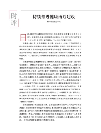 | 江海健康 时评 06 2024-09-251 2024年09月25日 星期三 |