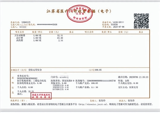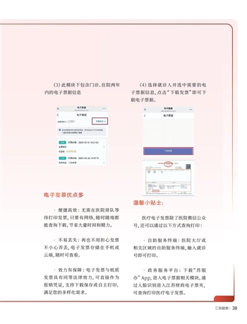 •政务服务平台:下载“苏服办”App,进入电子票据相关模块,通过人脸识别进入江苏财政电子票夹,可查询打印医疗电子发票。