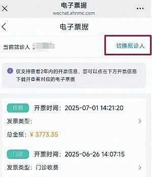 (3)此模块下包含门诊、住院两年内的电子票据信息