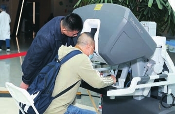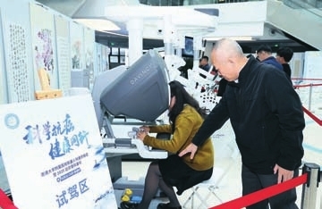 “手术机器人由医生控制台、患者手术平台和影像处理系统三部分组成。”“医生控制台分为头部感应与视野区、手部操作区及脚部控制区,大家看我怎么操作……”机器人试驾环节,在工作人员的指导下,现场市民逐一体验3D高清手术视野,亲身感受“端坐操作台,化身‘三头六臂’外科医生”的奇妙体验。“原来这就是手术机器人!”“多个机械臂同时操作也太精准了!”活动现场惊叹声此起彼伏,现代医疗科技的魅力吸引了众多市民、患者及医务人员驻足参与。