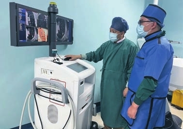 面对这一难题,呼吸与危重症医学科呼吸介入团队没有退缩。经全面评估,团队为李老伯定制了一套“精准打击”方案:基于电磁导航气管镜联合CBCT、径向超声的经支气管镜肺外周病灶活检+冷冻消融术,既精准清除病灶,又最大程度保护他脆弱的肺功能。