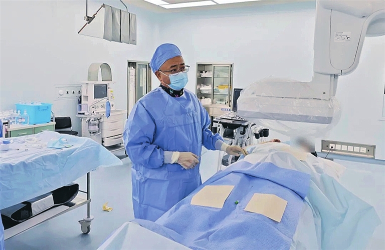 置弹簧圈时操作空间异常狭小,如同在弯曲的管道内作业,稍有不慎就可能顶破脆弱的动脉壁,引发大出血。手术团队全程紧盯监护仪,时刻关注心率、血压的细微变化,赵辉教授凭借多年的介入手术经验,在影像引导下精准操控器械,一点点将弹簧圈送入瘤体。