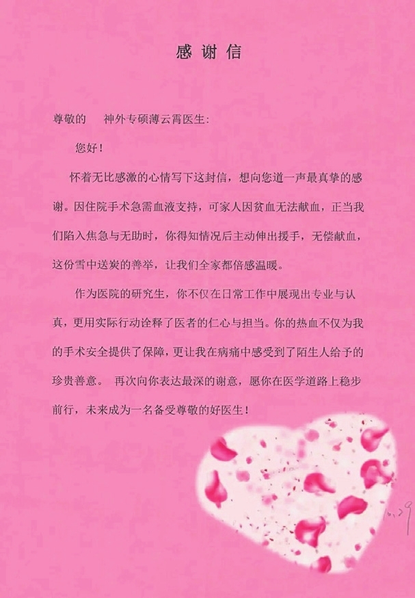 粉色的信纸,感激的字迹从患者心底流淌而出,无声流入医生的心田。这不仅是一次真情回响,也是一页温暖的医患记忆。