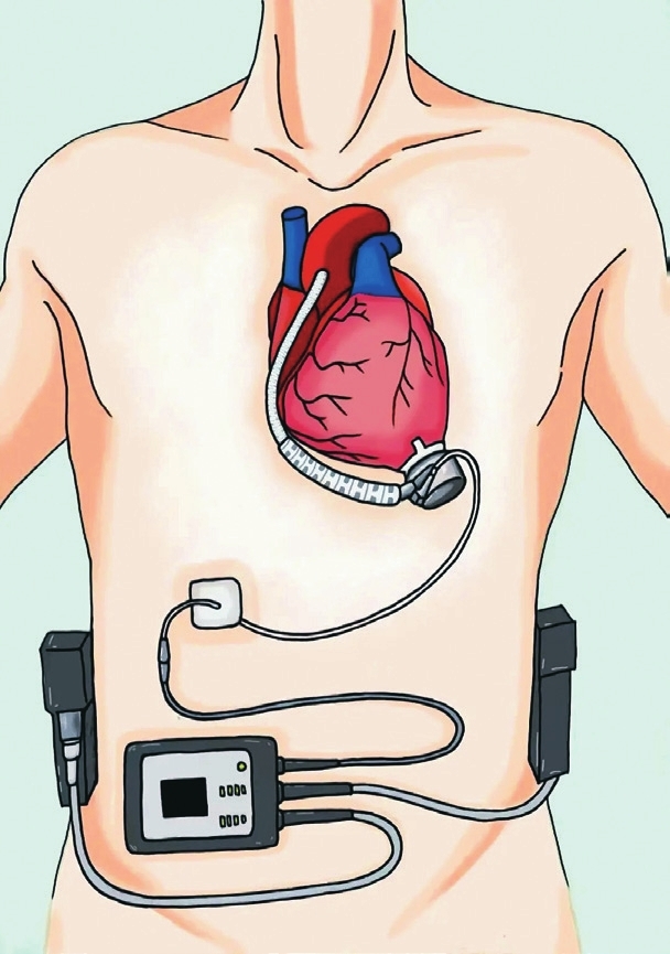 面对复杂危重的病情,秦卫团队经过反复研讨,最终确定为张先生植入我国自主研制并生产、全球最小最轻的Corheart®6,术中同步实施冠状动脉搭桥术。“心衰就像心脏这个‘发动机’彻底损耗,修不好了,随时可能‘熄火’。我们要做的,就是在他左心室心尖部装一个鸡蛋大小的辅助装置来帮助左室泵血。这款人工心脏,它就像个精密的‘动力泵’,能把心室里的血抽出来,再打入升主动脉,维持正常血液循环,给各个脏器送营养。”
